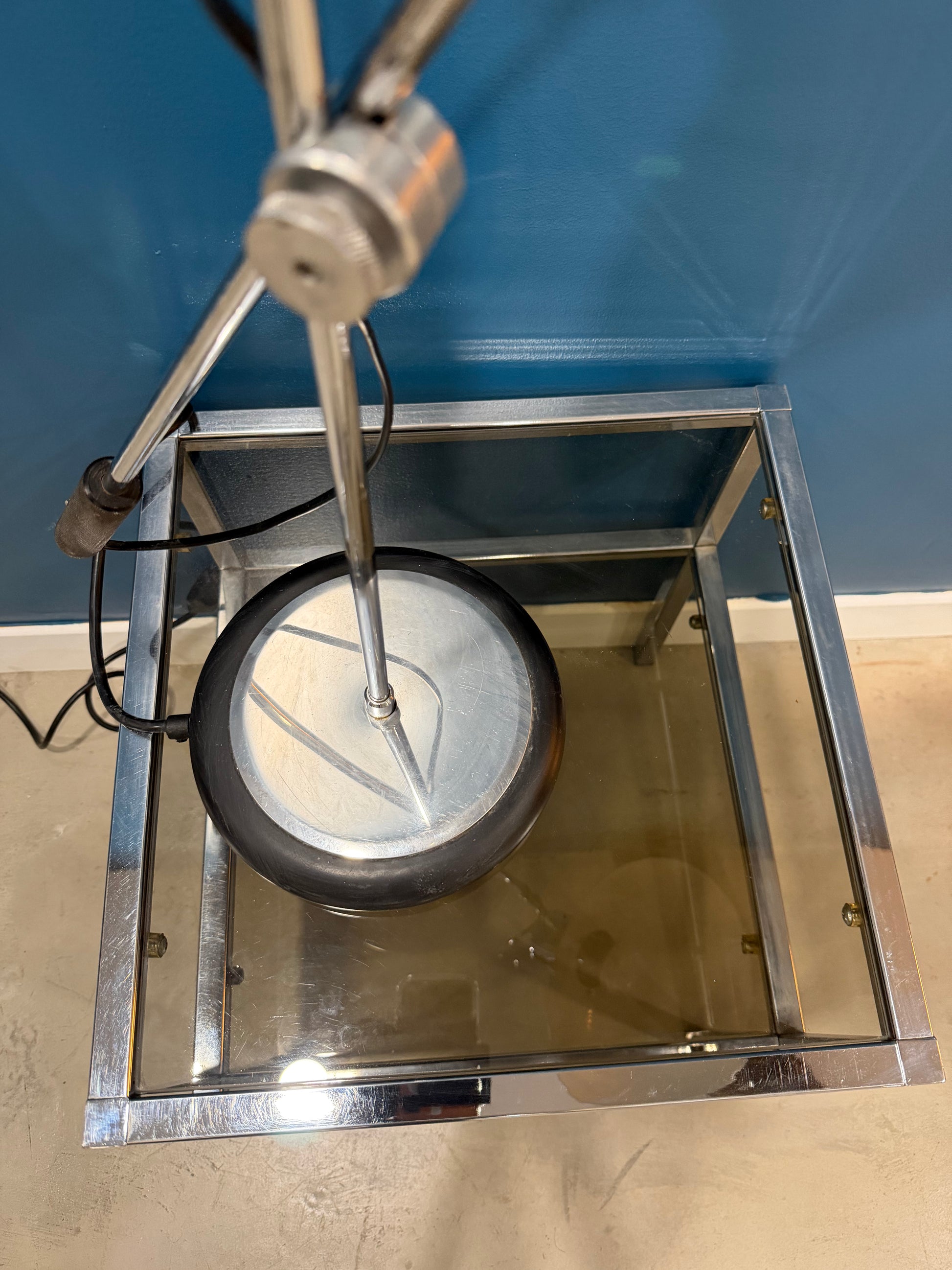 Lampe à balancier emblématique du design space age, créée par André Lavigne pour Aluminor. Cette pièce française des années 1960-1970 allie fonctionnalité et esthétique moderniste. Son système de contrepoids reglabe permet un mouvement fluide et équilibré, le bras articulé offre une flexibilité totale en hauteur et en longueur. L'abat-jour orientable à 360° s'adapte à vos besoins d'éclairage. Dimensions : 75 cm de longueur, 70 cm de hauteur, 15 cm de profondeur. tres Bon état général. Une véritable pièce de collection pour les amateurs de design vintage.