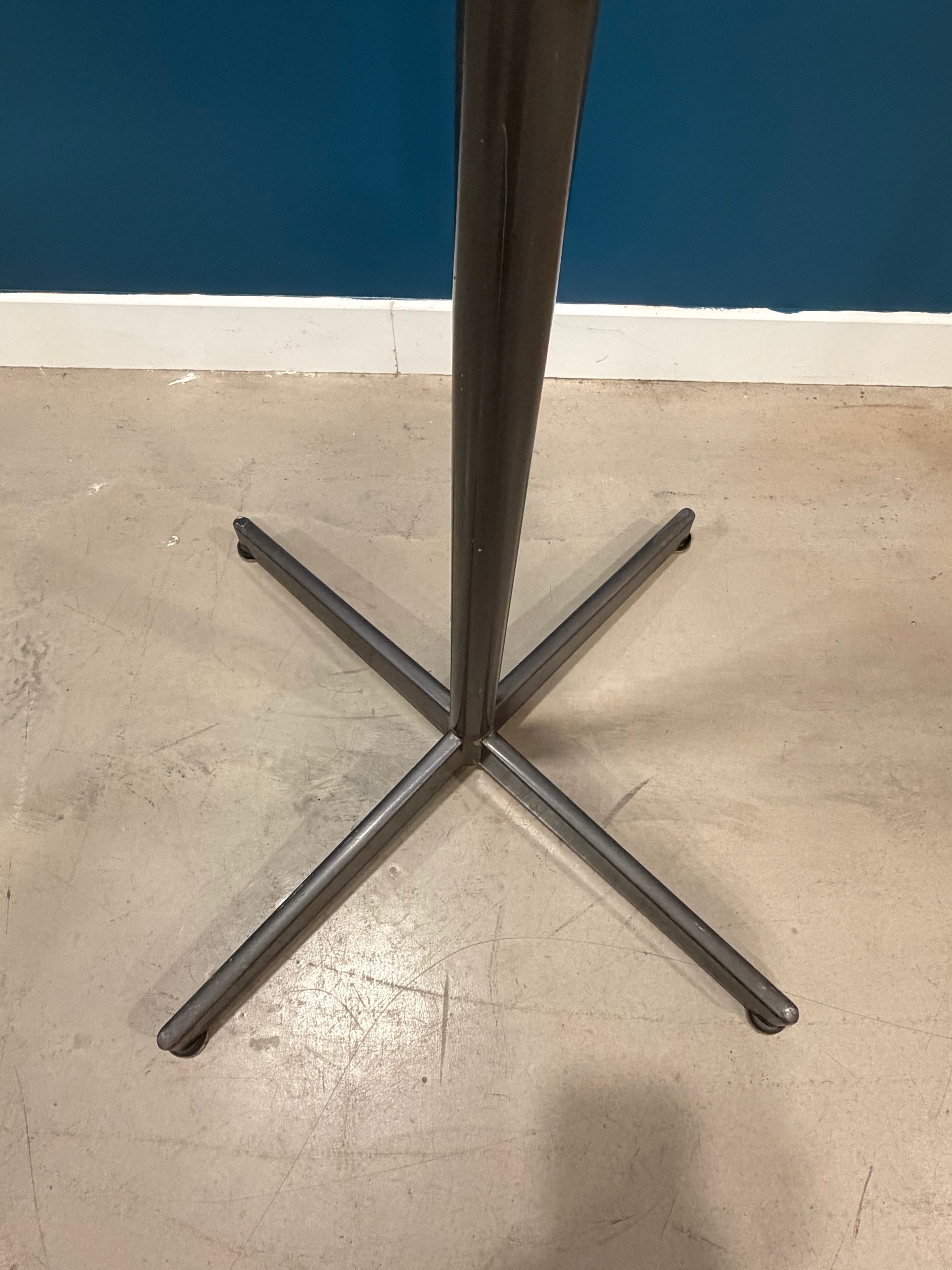Porte-manteau perroquet des années 1970, véritable icône du design rétro. Impressionnante structure de 2 mètres de hauteur combinant l'inox chromé et le métal noir mat pour un contraste élégant. Douze patères dotées de terminaisons en plastique noir assurent une prise confortable et protègent vos vêtements. Construction robuste typique de l'époque, cette pièce maîtresse apporte authenticité et caractère à tout espace, du hall d'entrée au dressing. Legeres traces conformes a son age...